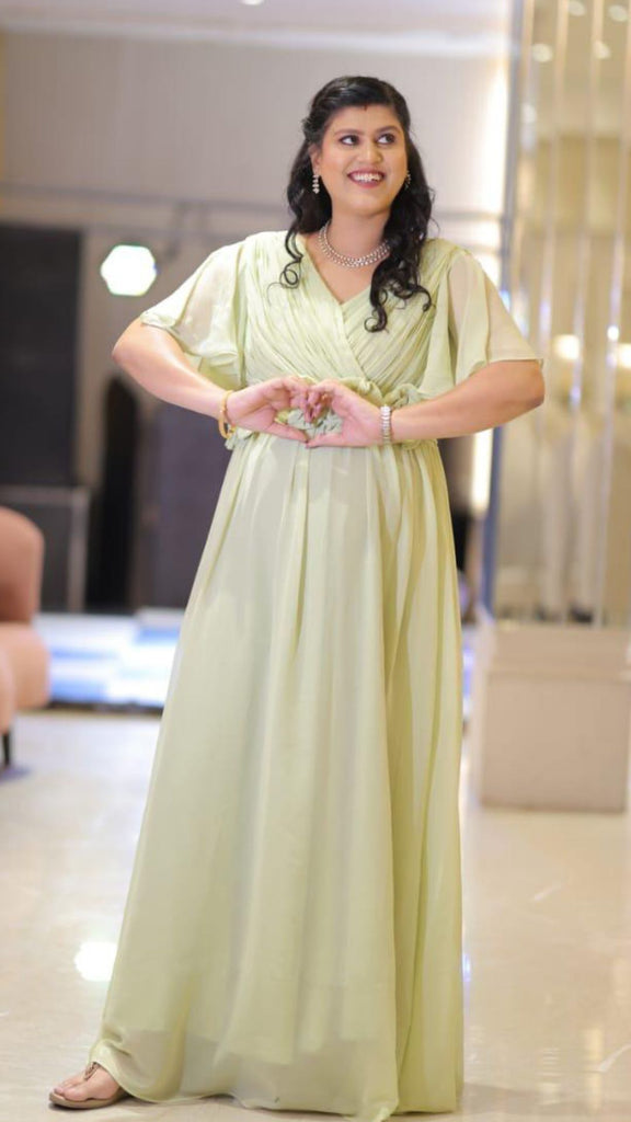Pastel Lime-Green Baby-Shower Gown with Sash
