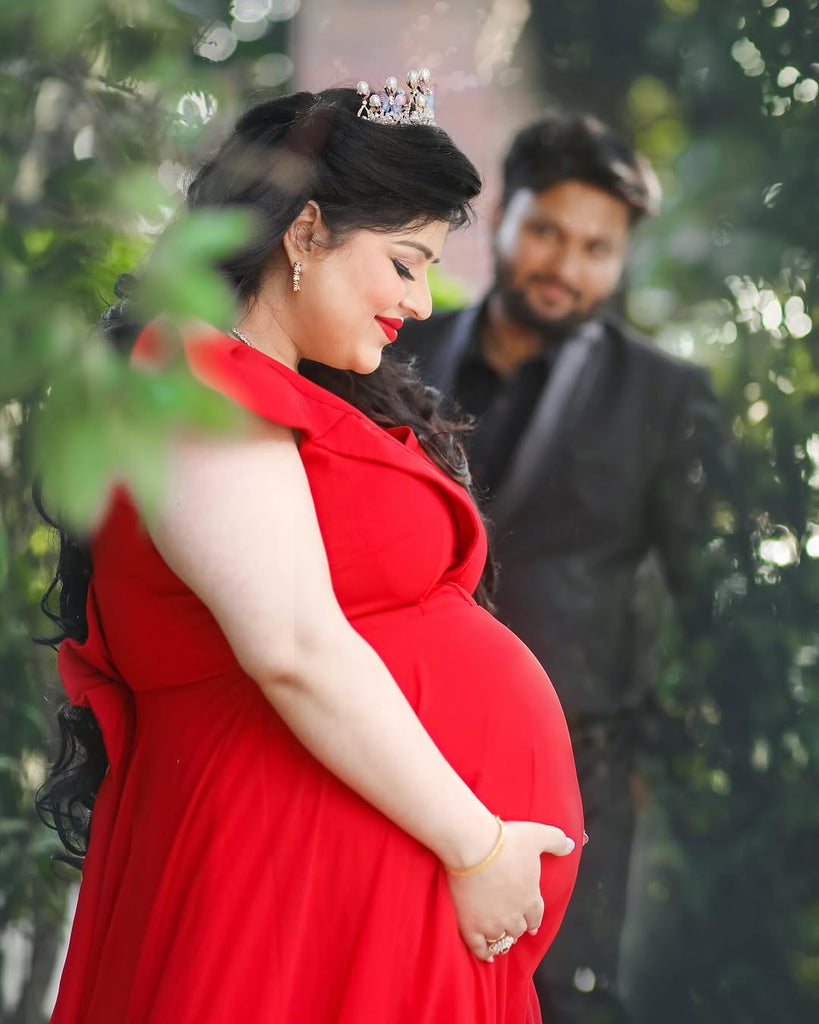 Red Baby-Shower Gown With Trail